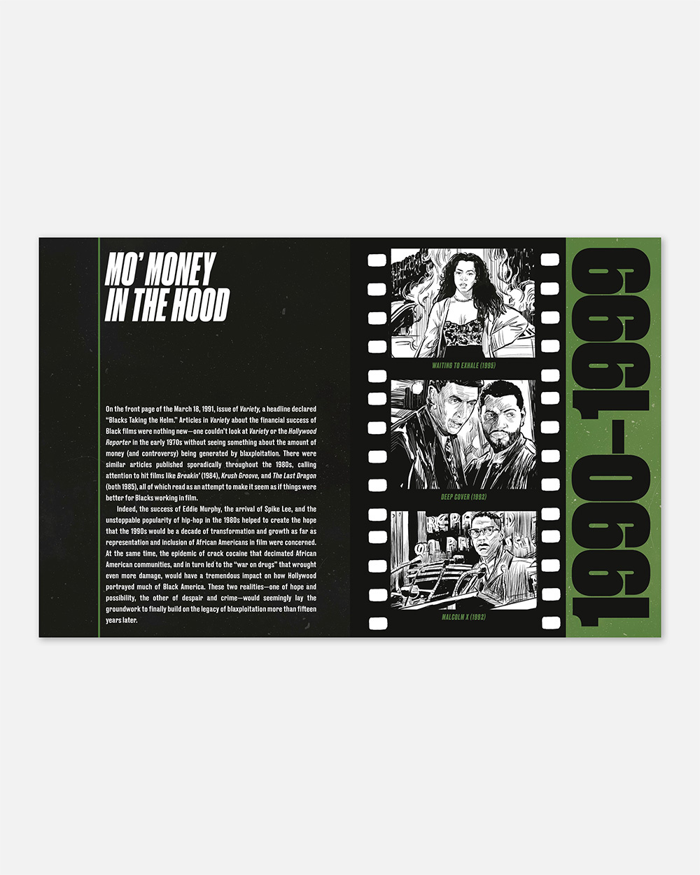 Divided by decade, each section of the book covers an important era and milestone for Black film, highlighting both difficulties and triumphs through time. With gorgeous illustrations, film stills, and rare pieces of ephemera, Black Film celebrates the glowing contributions of Black actors and filmmakers, without shying away from discussing the racism that is rooted in Hollywood—an important reality to address in order to make progress.