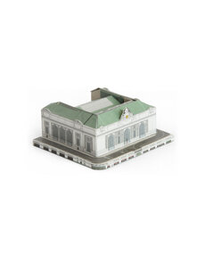 DIY 1:2500 scale miniature paper model, about 0.75 inches tall and 2 inches wide finished. Designed by Matt Bergstrom. Published by Wurlington Bros. Press. Unfinished postcard measures 6.75 x 4.7 inches and can be mailed with standard letter postage.