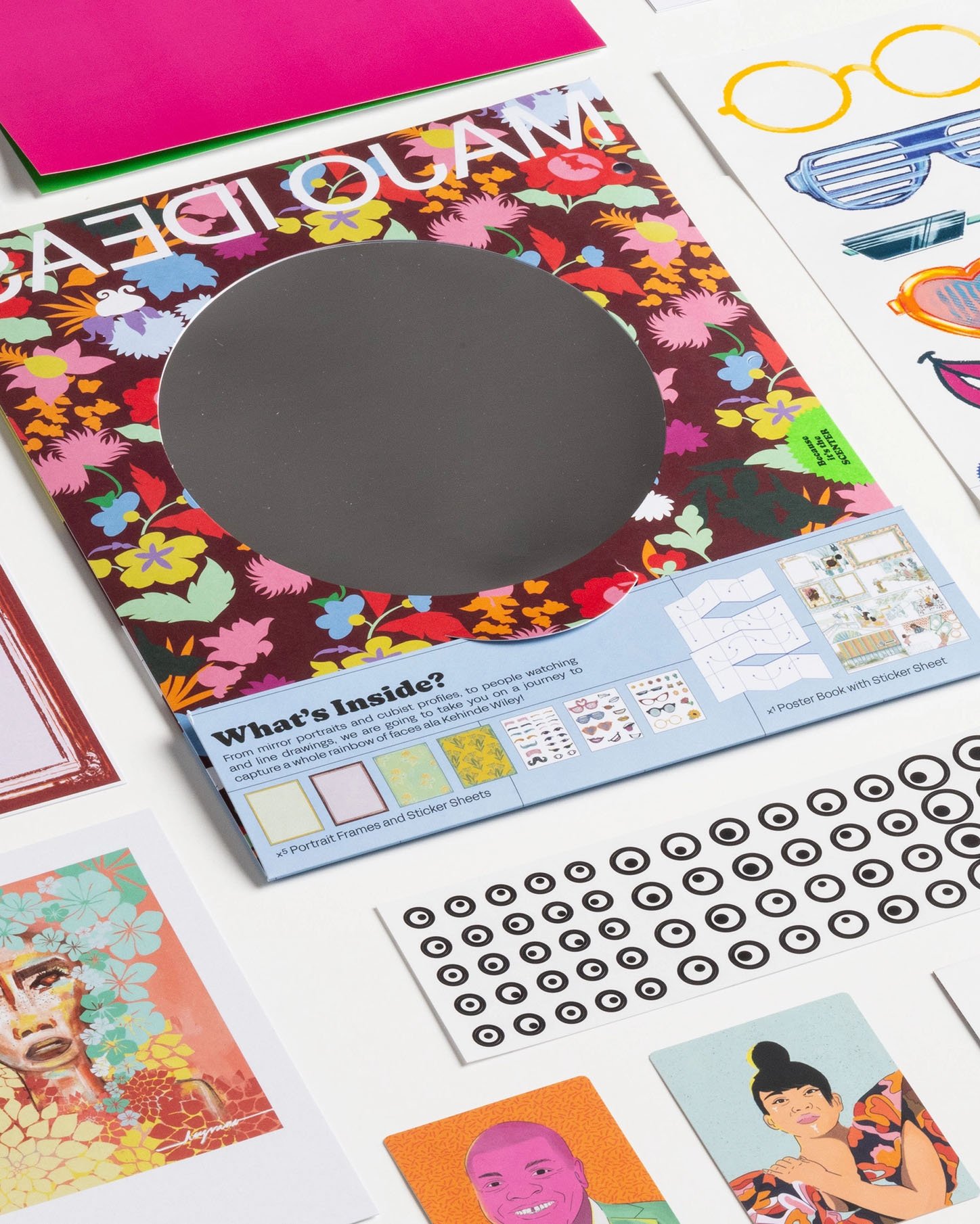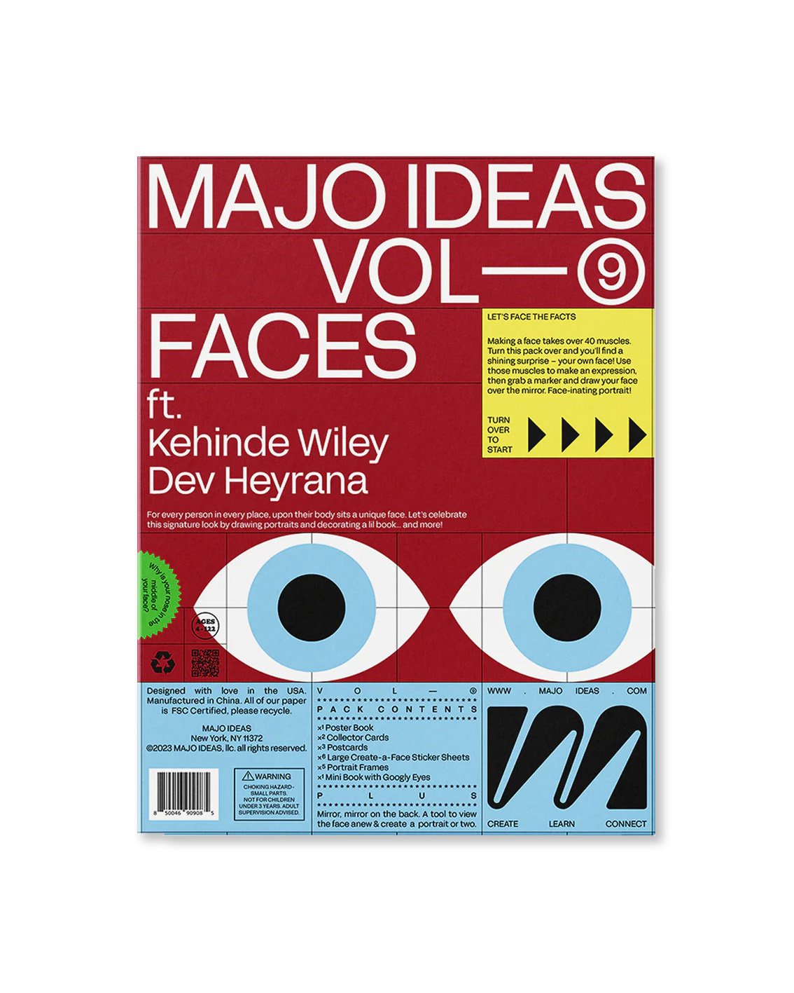The theme of Volume 9 is Faces, featuring artists Kehinde Wiley and Dev Heyrana. From mirror portraits and cubist profiles, to people watching and line drawings, this pack takes you on a journey to capture a whole rainbow of faces! The pack includes collector cards, sticker sheets, postcards, portrait frames, and a mini book with googly eyes.