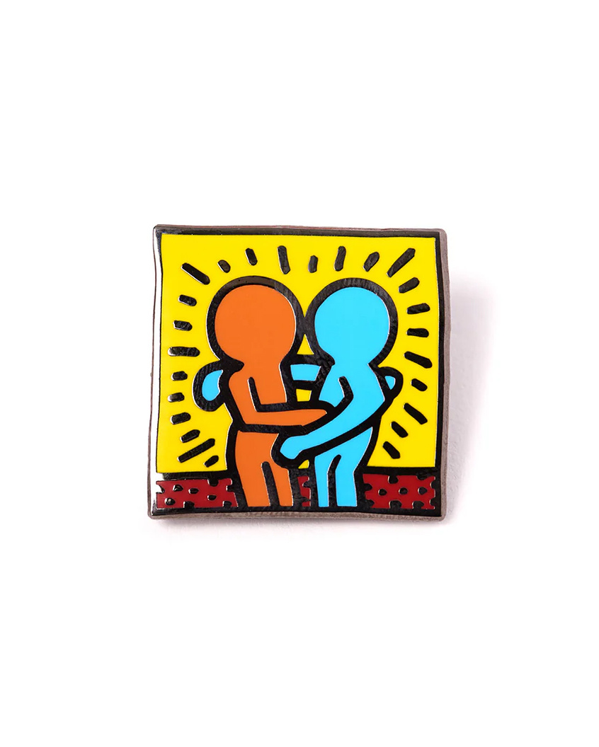 Manufactured by Pintrill. Measures 1 x 0.75 inches. © Keith Haring Foundation. Licensed by Artestar, New York