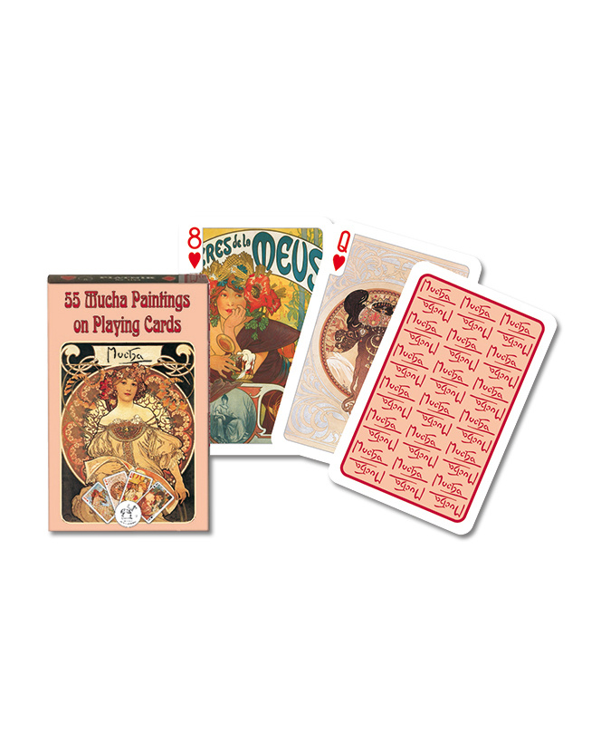 A high-quality deck of playing cards featuring the works of Alponse Mucha.