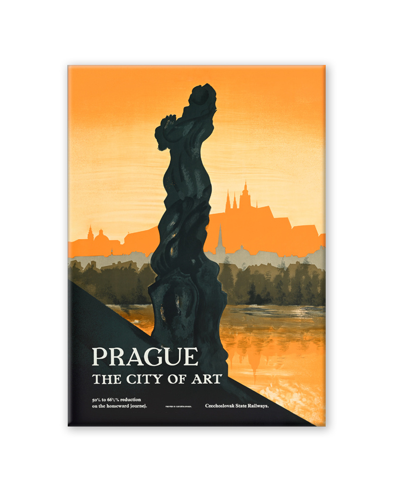 A magnet featuring Prague/The City of Art, 1937, by Zdenek Rykr.