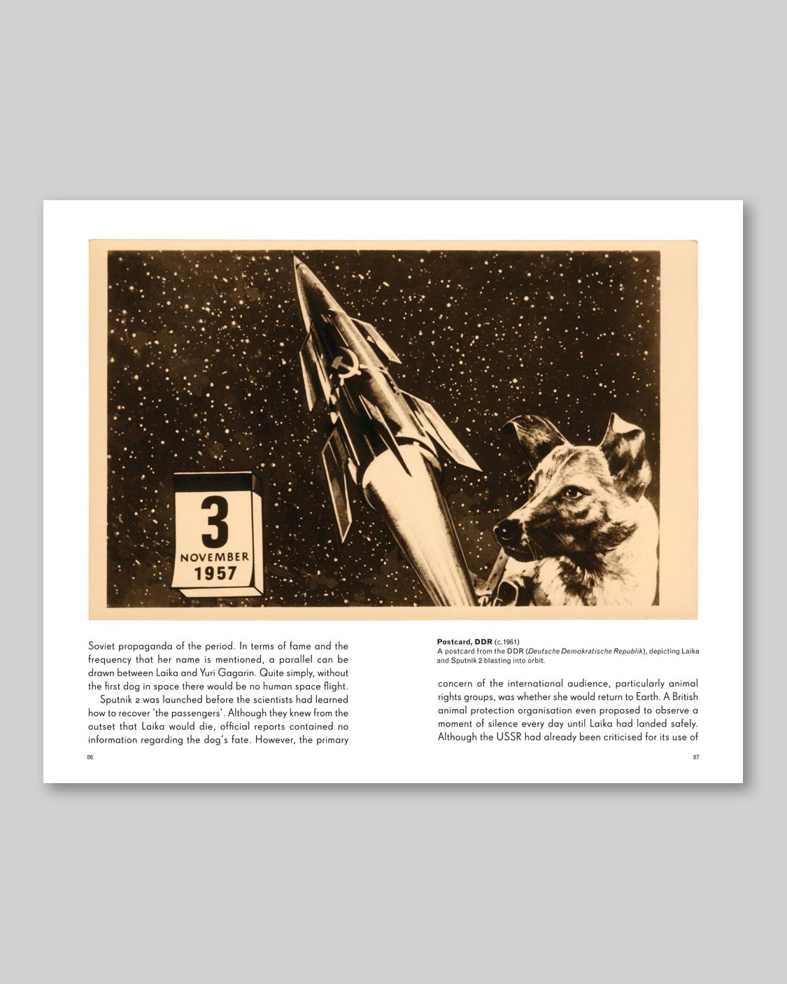 On 3 November 1957, the dog Laika was the first Earth-born creature to enter space, making her instantly famous around the world. She did not return. Her death, a few hours after launching, transformed her into a legendary symbol of sacrifice. Two further strays, Belka and Strelka, were the first beings to make it back from space, and were swiftly immortalized in children's books and cartoons.