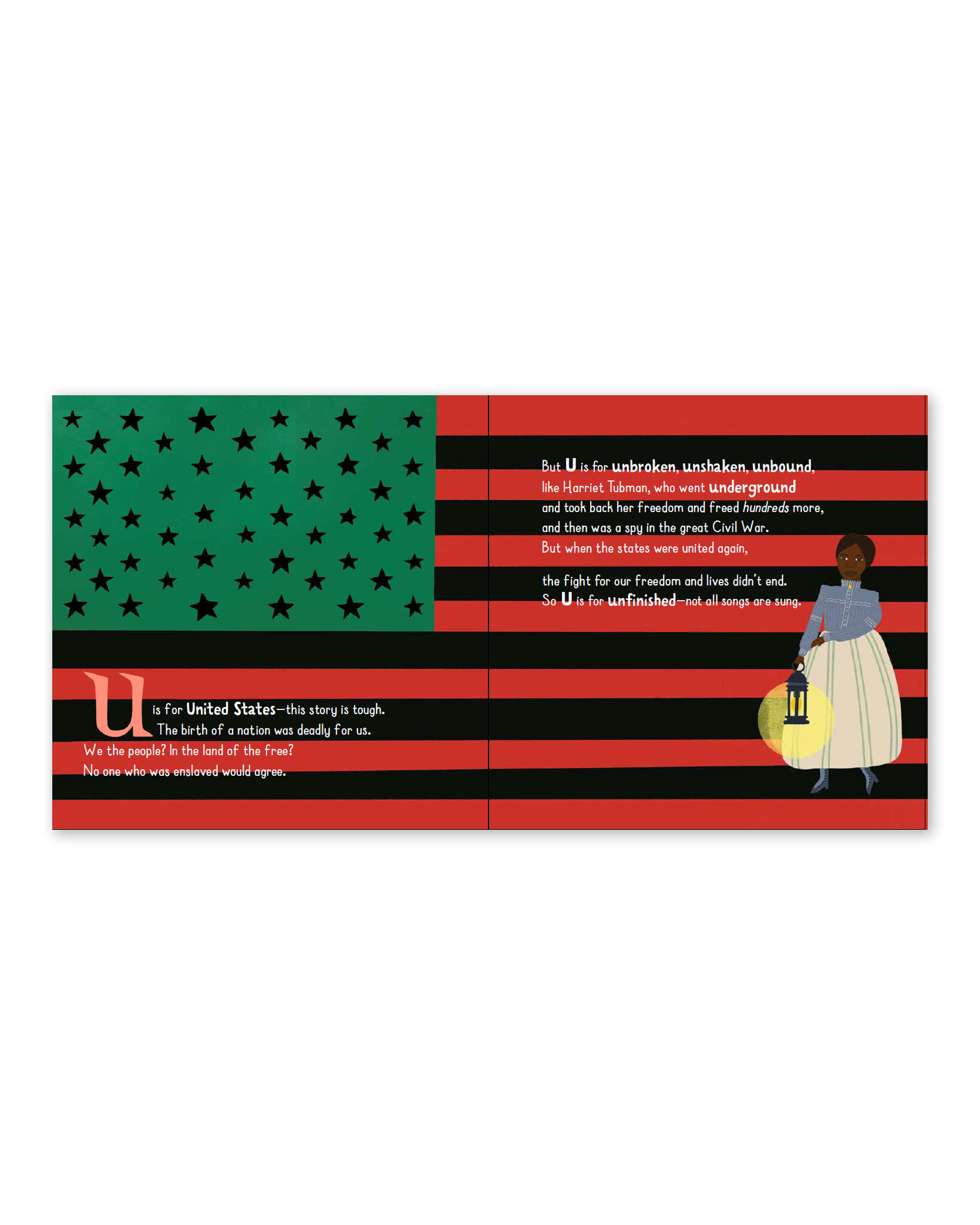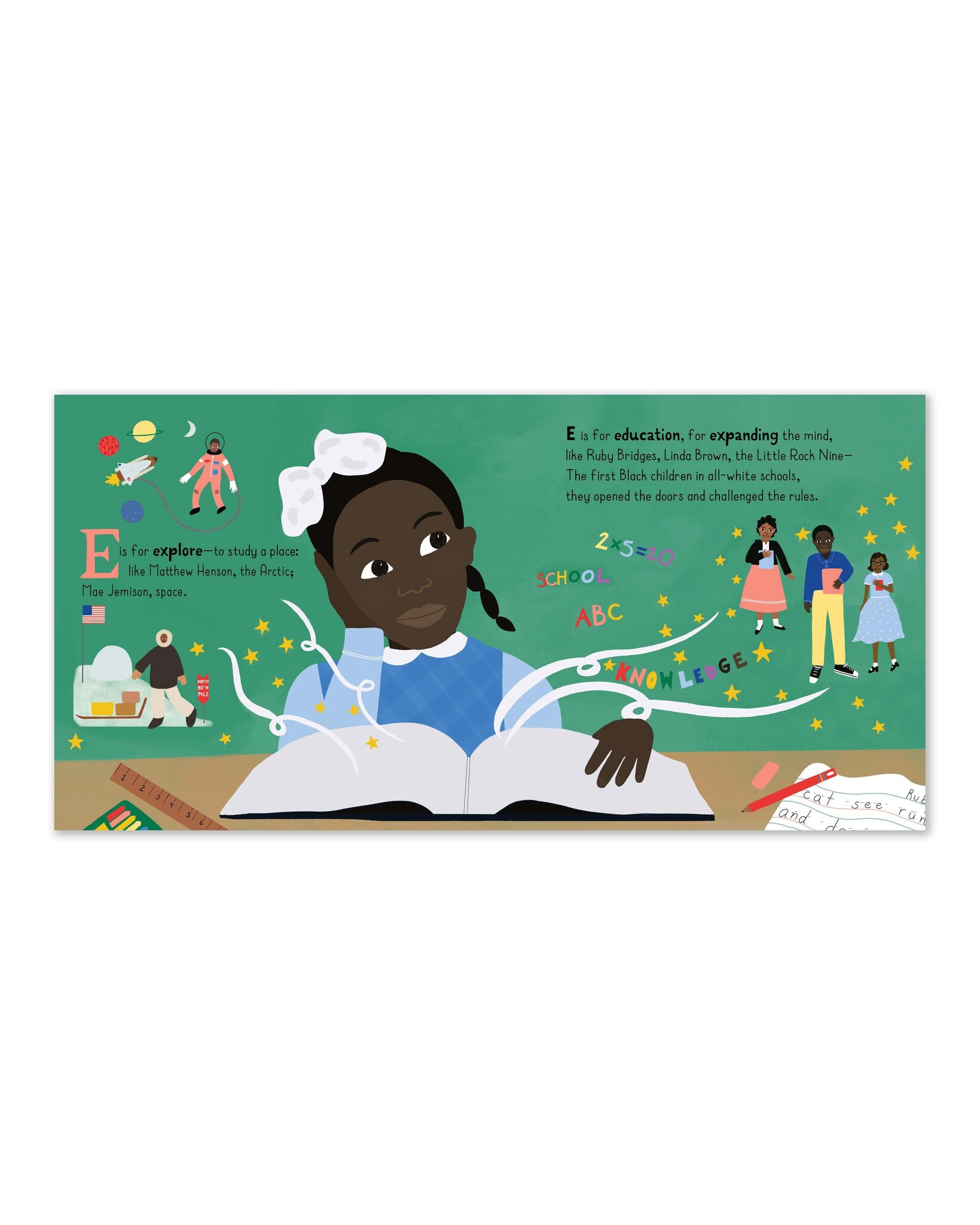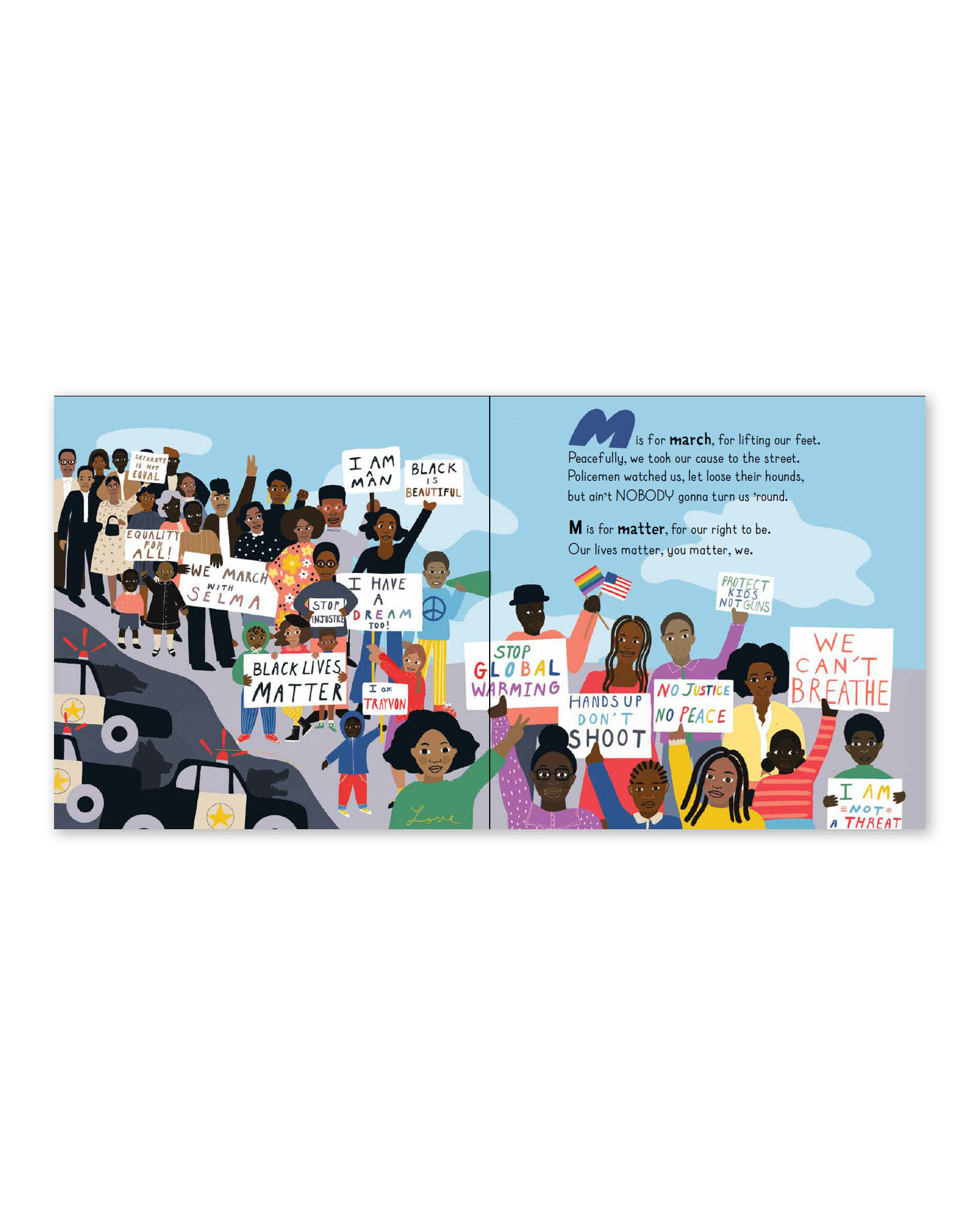 It’s a story of big ideas – P is for Power, S is for Science and Soul. Of significant moments – G is for Great Migration. Of iconic figures – H is for Zora Neale Hurston, X is for Malcom X. It’s an ABC book like no other, and a story of hope and love.