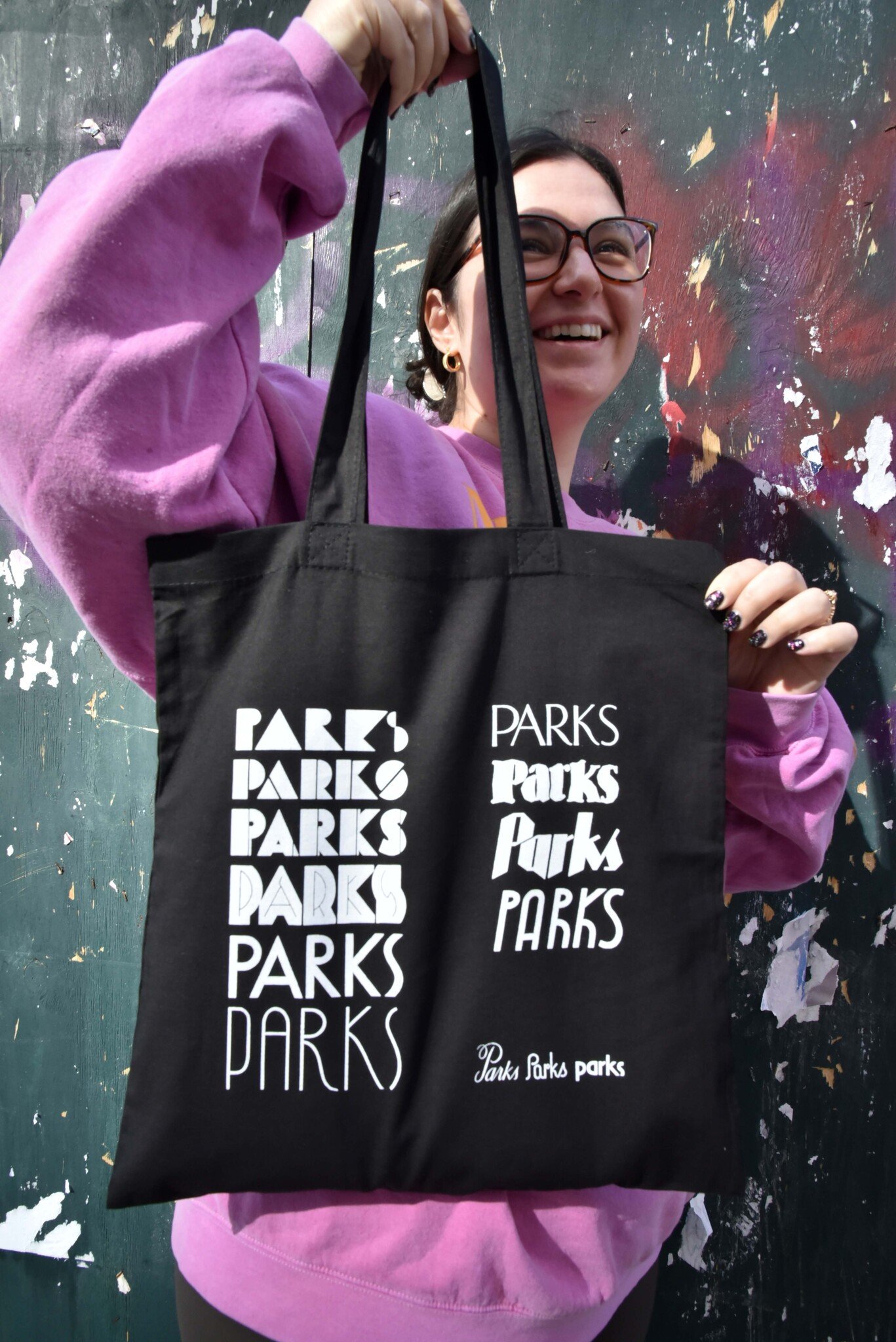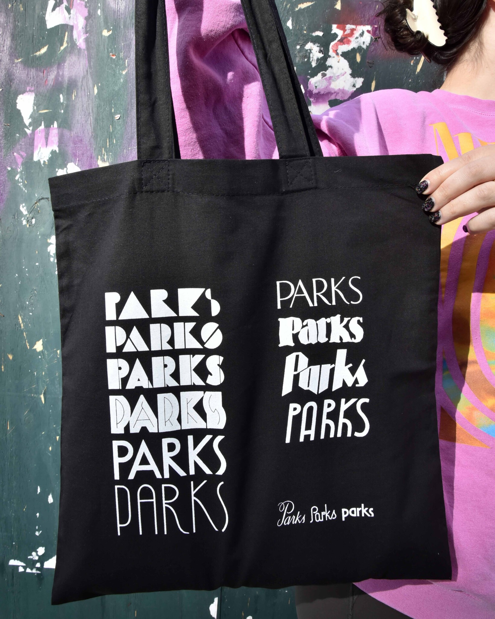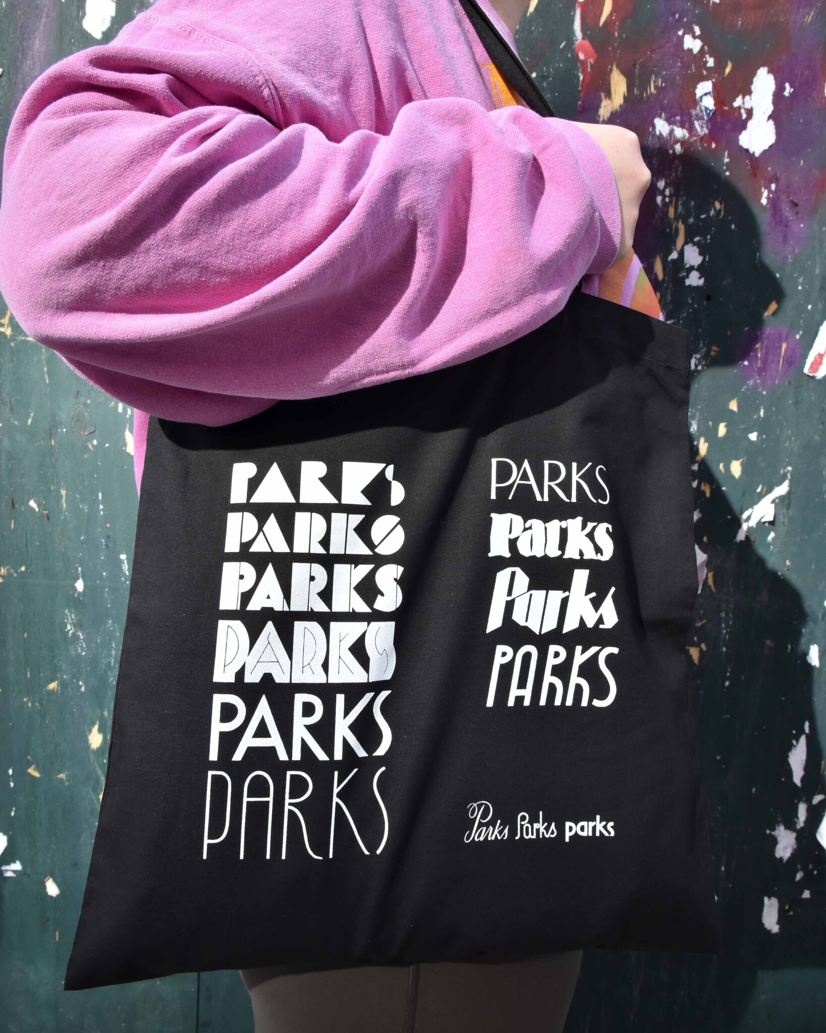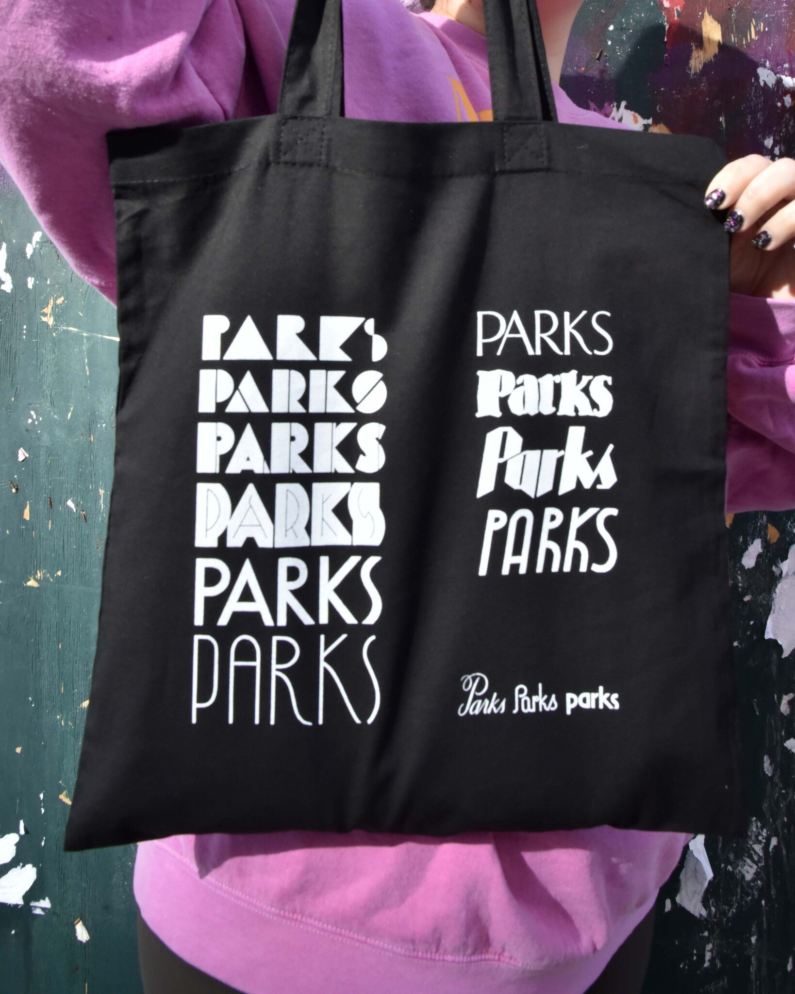 This exclusive tote bag celebrates Waugh's treatment of the word "Parks," from homespun cursive inspired by folk songs, to peaked letterforms echoing mountain ranges, to the cutting edge of art deco modernity.