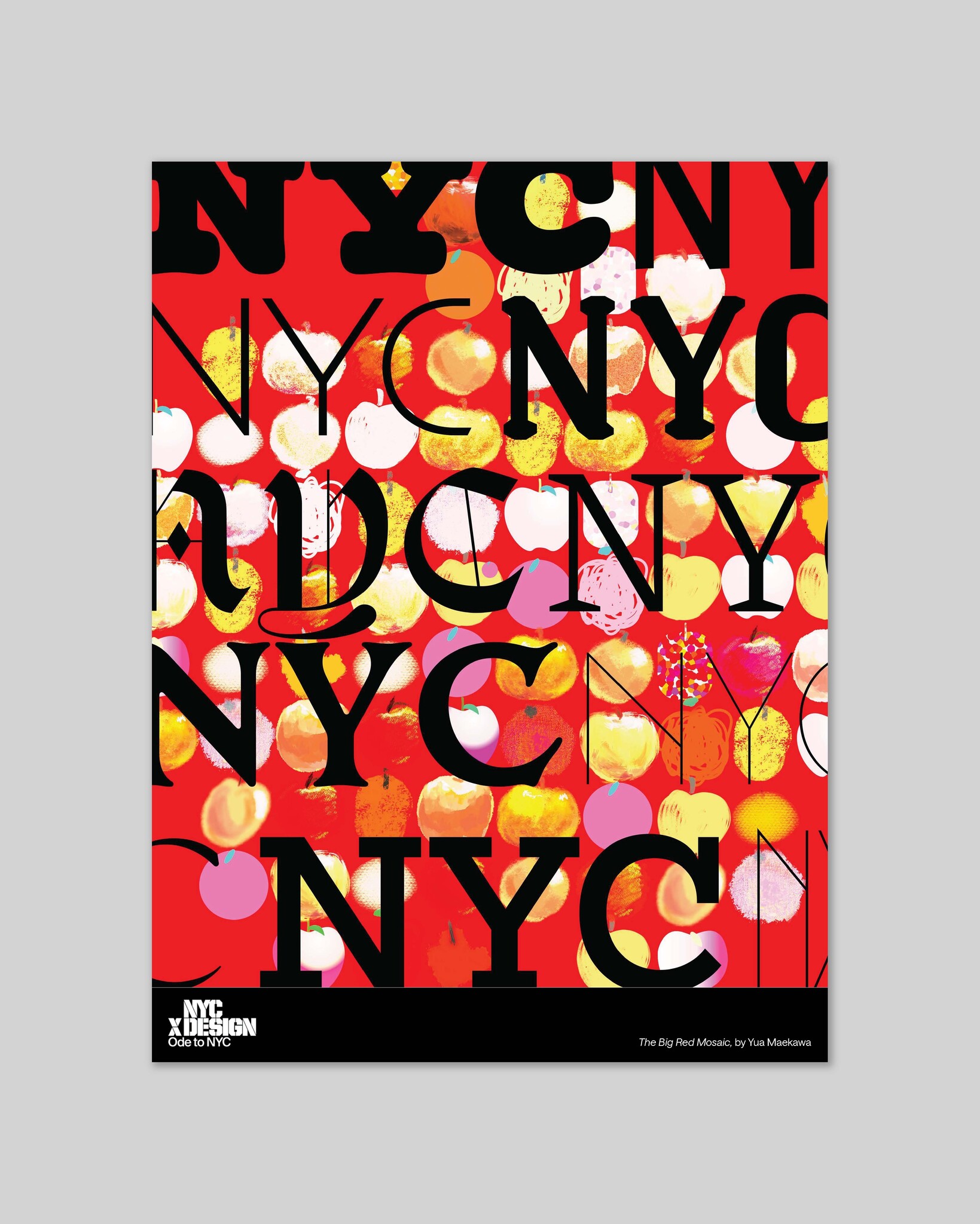 From designer Yua Maekawa: "For this year’s Ode to NYC poster campaign, themed around diversity and inclusive design, I present a composition of a pixelated red apple formed from countless smaller apples, each rendered in a unique visual style. From a distance, the image appears as a single red apple—an enduring emblem of New York City, “The Big Apple.” Yet on closer view, the individuality of each apple emerges, symbolizing the distinct voices and approaches of designers across the city. Collectively, these elements form a vibrant whole, celebrating both the power of individuality and the strength of unity within New York’s creative community."